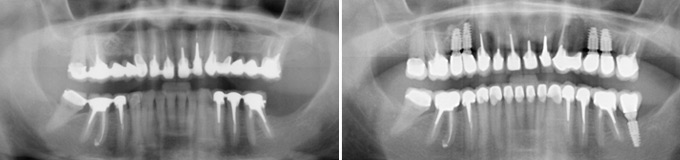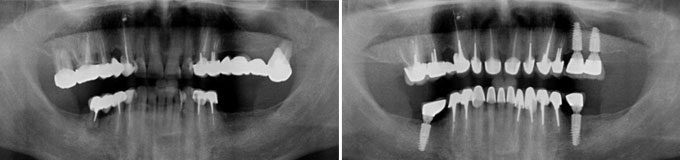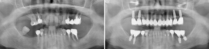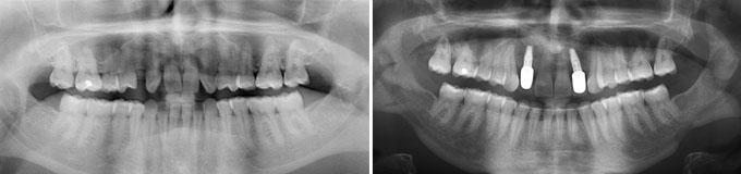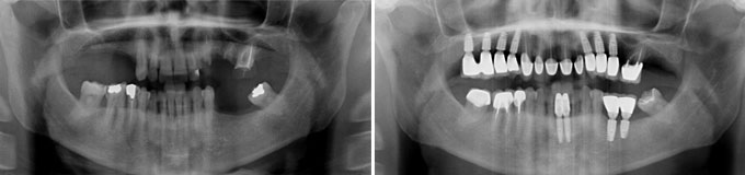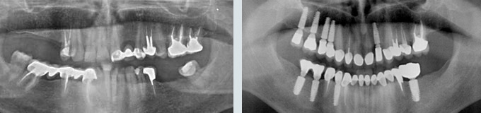 Final : traitements de racines effectués et dents manquantes remplacées.