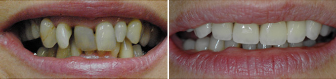 Toutes les dents manquantes sont remplacées et le sourire refait.