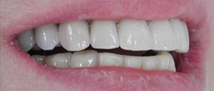 J’ai des vieilles couronnes et des bridges à refaire, je refuse l’appareil mobile. On reprend la totalité du sourire et on place des dents fixées sur implants.